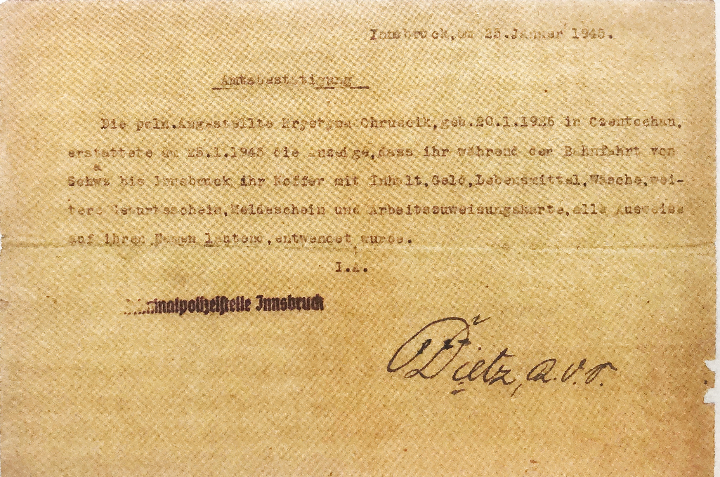 Die Sintezza Anna Mettbach wurde kurz vor Kriegsende von den Nationalsozialisten auf einen Todesmarsch vom KZ Ravensbrück ins KZ Dachau gezwungen. Wenige Tage nach ihrem Eintreffen in Dachau befreiten die US-Amerikaner das Lager.